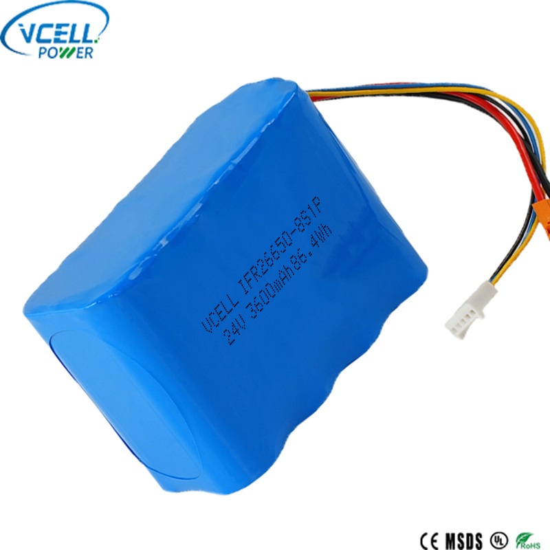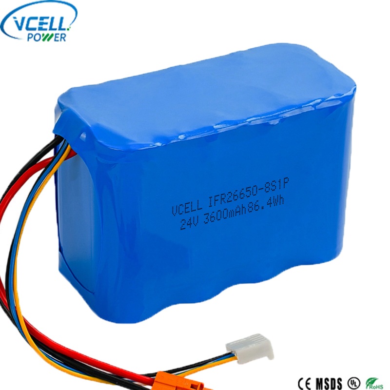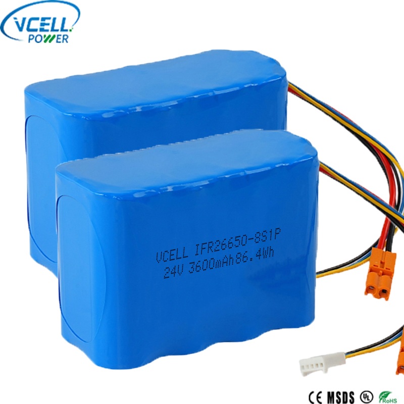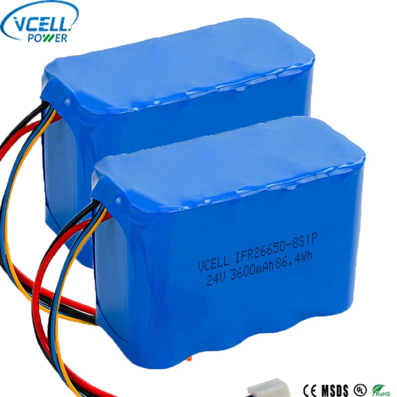 Ez a 24 V-os 3600 mAh 26650 LiFePO4 újratölthető akkumulátorcsomag egy nagy teljesítményű 24 V-os akkumulátor a Vcell Power akkumulátorgyártótól Kínában. Kompakt 8S1P kialakítású, 3600 mAh kapacitással és 86,4 Wh-s energiakimenettel. A tartós 26650 cellákkal készült VCELL 24V 3600mAh 26650 LiFePO4 újratölthető akkumulátorcsomag több mint 2500 ciklusos élettartamot és kiváló hőbiztonságot biztosít. Üdvözöljük az érdeklődésen!