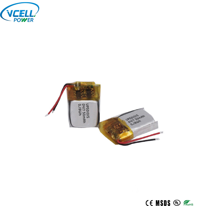 1. 3,7 V 501015 50 mAh-s mini lítium polimer akkumulátor kiváló minőségű elválasztókkal és tömítési eljárásokkal, biztonságosan használható