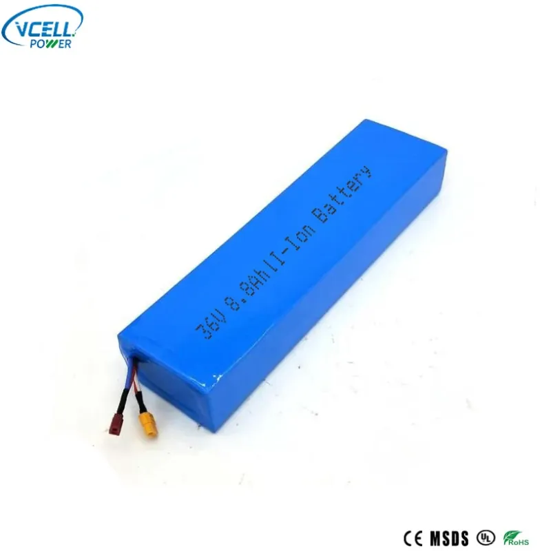 A VCELL POWER gyár kiváló minőségű 36V 8800mAh 18650 Lithium Ion Rechargeable Battery egy széles körben használt akkumulátor kis és közepes méretű elektromos készülékekben. 10S4P 2200mAh lítium-ion cellákból áll össze, amelyek nagy energiasűrűséget és stabil ciklusteljesítményt kínálnak, kiforrott technológiát használva. A 36 V névleges feszültség 8,8 Ah praktikus kapacitással kombinálva jó egyensúlyt teremt a méret, a súly és az akkumulátor élettartama között, kielégítve mind a napi használat, mind a kereskedelmi alkalmazások igényeit. BMS-sel felszerelve túltöltés-, túlkisülés-, túláram- és rövidzárlatvédelmet biztosít, így biztosítva a magas biztonságot. Az akkumulátor élettartama több mint 700 ciklus, ami erős tartósságot bizonyít.