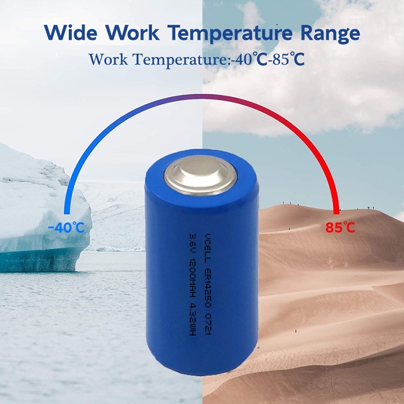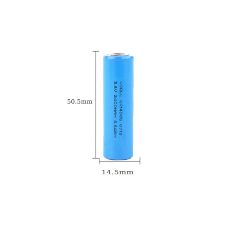 A VCELL POWER ER14505 3,6 V 2400 mAh AA méretű Li SOCL2 akkumulátor egy eldobható akkumulátor, amely teljesen zárt kialakítással, rozsdamentes acél házzal, fém-üveg tömítéssel és légmentes hegesztési technológiával rendelkezik, amely biztosítja a biztonságot és a megbízhatóságot. Szabványos AA méretének köszönhetően a szokásos eszközök széles skálájával kompatibilis. Széles -55°C és +85°C közötti üzemi hőmérséklet-tartománya stabil működést biztosít különféle környezetben. Éves önkisülési aránya kevesebb, mint 1%, tárolási ideje szobahőmérsékleten több mint 10 év, jelentősen csökkentve a berendezések karbantartását, és költséghatékony és gazdaságos teljesítményt kínál. Nagy energiasűrűsége és rendkívül hosszú élettartama ideális energiaellátási megoldássá teszi az IoT-hez, az intelligens mérőórákhoz és más területekhez.